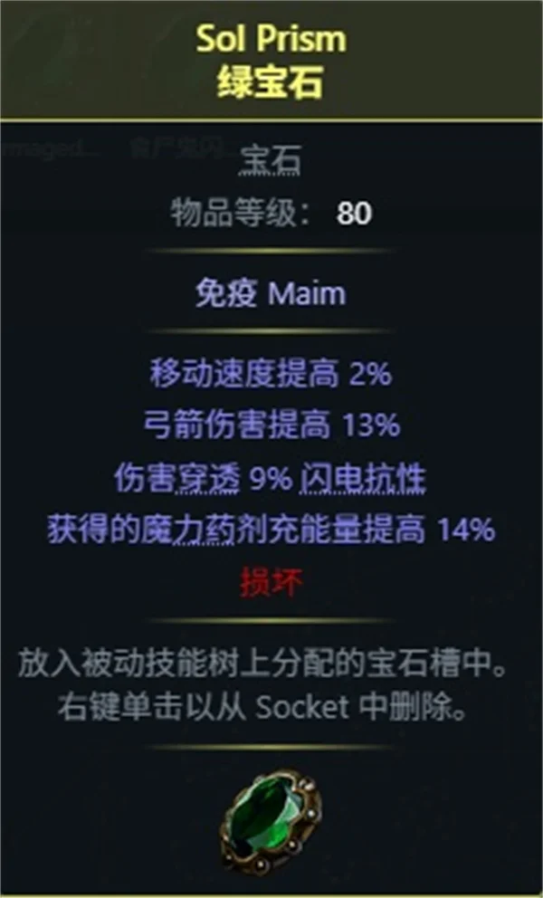 珠宝方面推荐绿色珠宝,词条可以选择移动速度提升、弓箭伤害提升、闪电穿透、闪电伤害。