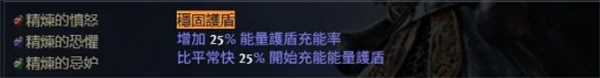 选择蓝宝石,词条可以选择能量护盾充能速度加快、法术伤害、诅咒持续时间、击杀回复魔力。
