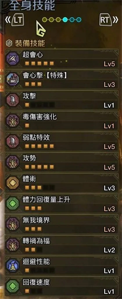 注:自带会心击的特殊以及毒属性伤害的强化,进不去会心率和斩位都很优秀。