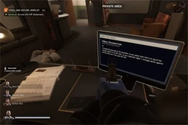 5、拿到手机以后,出来直接干掉保安,用保安的对讲机行动,进入vip展厅行动,前往目击地属于密码。