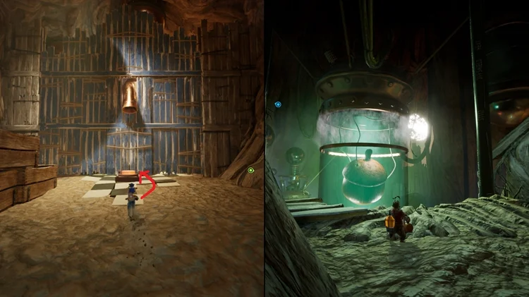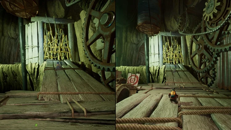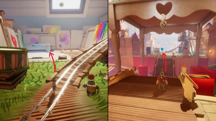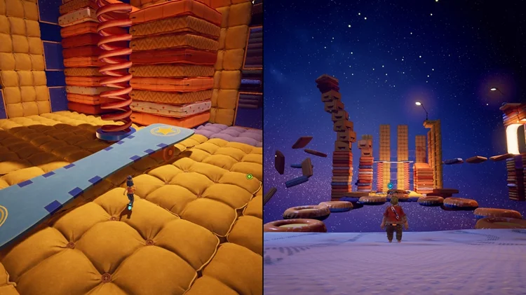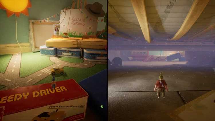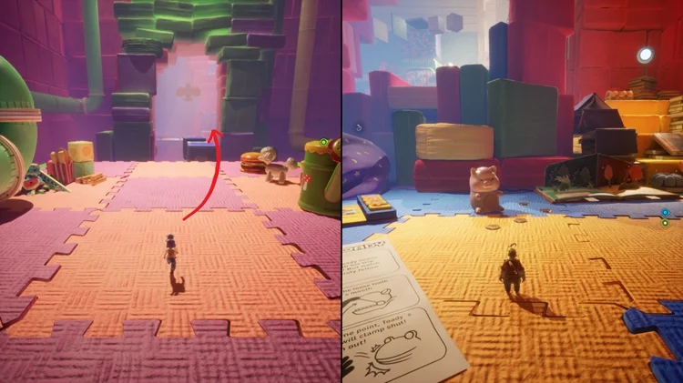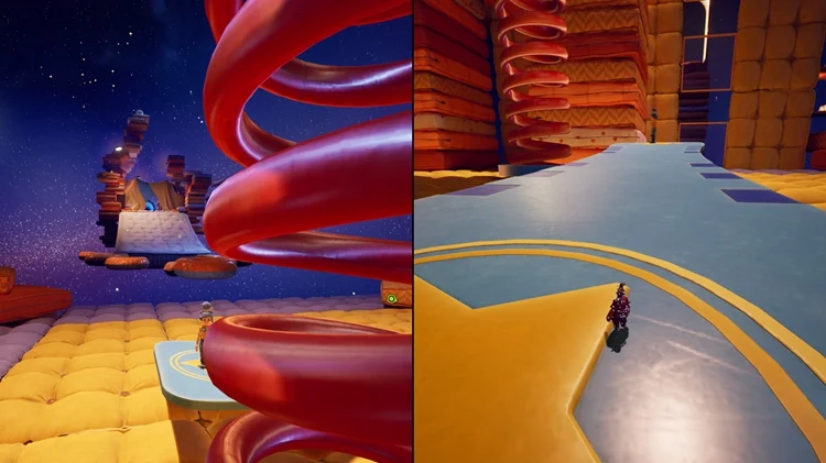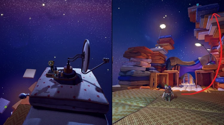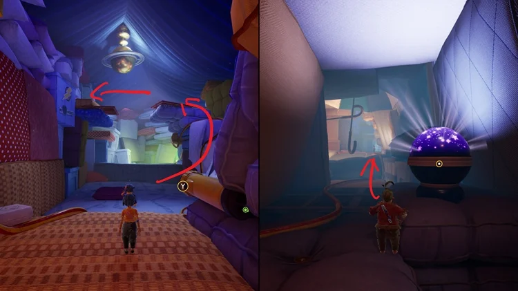 在这个小节开始时,一路穿过一盏星型灯和手电筒后,跳上手电筒右边的枕头平台并进入左手边的房间,里面有逃出生天的两位主角的雕像,两位玩家同时踩下雕像前的按钮即可解锁。(逃出生天彩蛋警告)