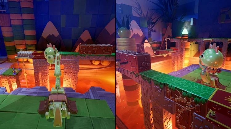 小节开始后一位玩家操纵恐龙,另一位玩家进行跳台。