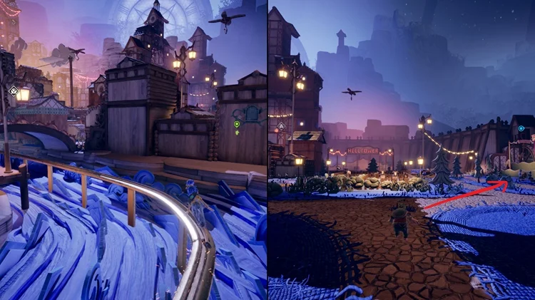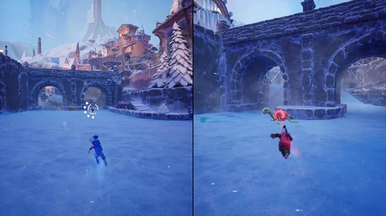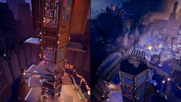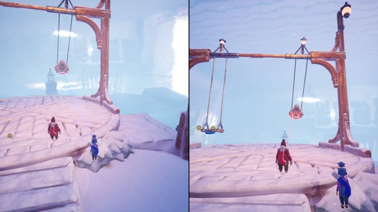 进入需要三座破冰塔的小镇后,激活左边的破冰塔,下方有两座秋千。通过磁力旋转有人坐着的秋千直至其环绕一圈并飞出。