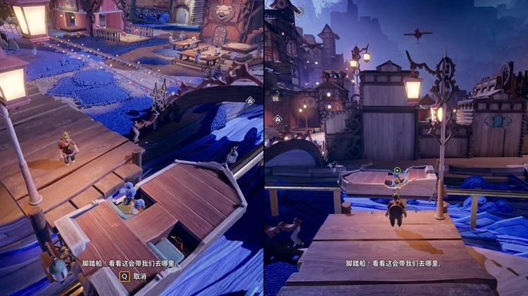 来到室外的小镇广场区域(与平台游戏奇才同区域),找到位于小镇中央区域的小河上的一艘双人船。共同划船沿轨道会到达一个小屋,进入小屋即可。(塞尔达彩蛋警告)
