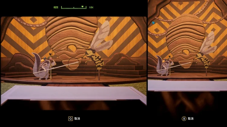 经过大炮黄蜂Boss战后,滑下坡后来到一处照相馆式房间。一名玩家在舞台上摆pose另一名玩家照相即可。