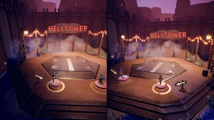 来到室外的小镇广场区域(与三角力量同区域),一路走到最底层,会看到“HELLTOWER”标识。两名玩家同时按下标识前方的两个按钮,会有一个有一定难度的爬塔游戏,一路跳台到最顶层即可.