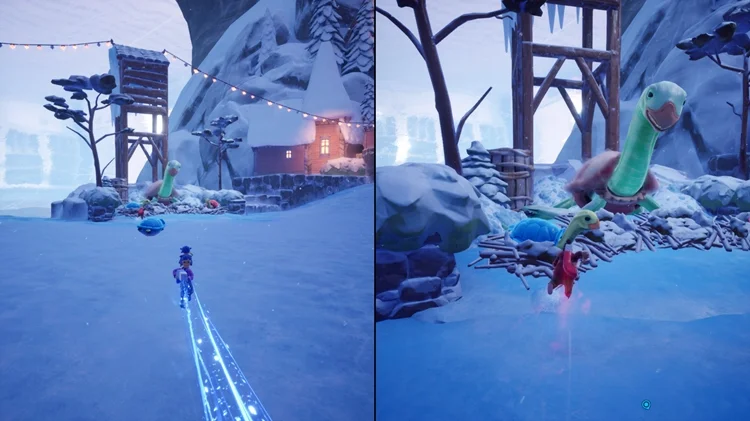 进入需要三座破冰塔的小镇后,在中央的冰湖区域可以看见一直乌龟妈妈。在破完冰后会有四只乌龟宝宝,用磁力将他们牵引到乌龟妈妈处即可。