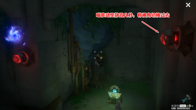 进入「迁能端末」视野后,首先将视角拉到右边,瞄准右边这个「迁能端末」,静置几秒将视角切换过去。