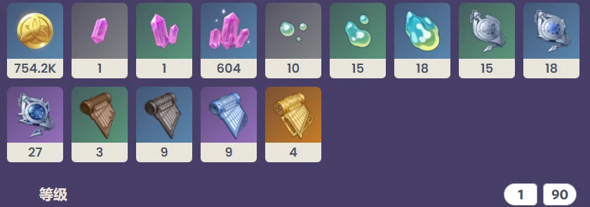 原神水仙十字之剑突破材料所有数量可以见上图