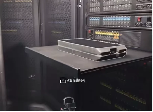 6、进去之后,我们需要把会计给引来,玩家需要利用it室的电话给他报假消息把他引过来,之后挟持会计用视网膜扫描打开铁门锁就可以偷到加密钱包了。