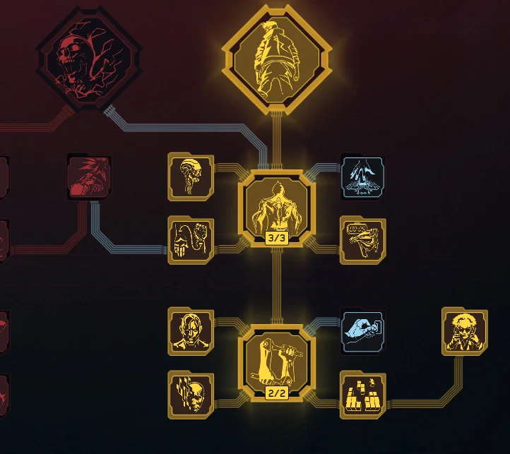 黑客流加点,肉体属性每点提供2点生命值,肉体技能树的肉度又和肉体属性挂钩,肉体黑客恐怕相当坐牢了。防御端思路靠潜行、突进提供的半伤、机动。