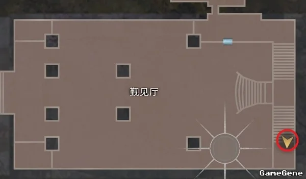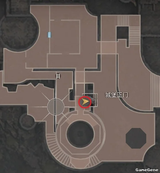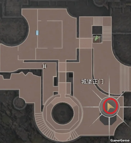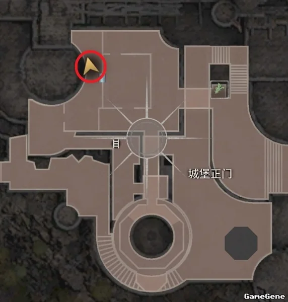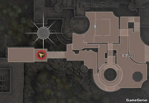 城堡正门西北方如图位置,有宝藏:萤石发饰。(ps:正篇这里是宝藏:精致的手镯)