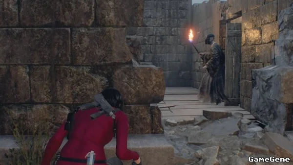 下来后,向右下楼梯,跑过去暗杀两个杂兵。