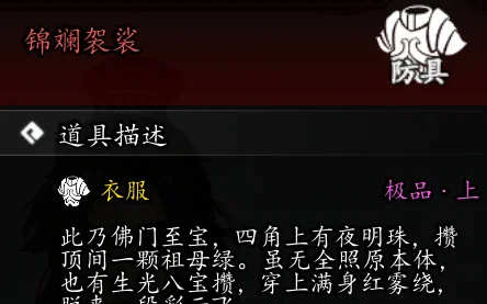 2、掉落极品衣服图纸可以用来锻造衣服装备,比如说可以制作锦镧袈裟,让防御力增加到671,气血值到591。