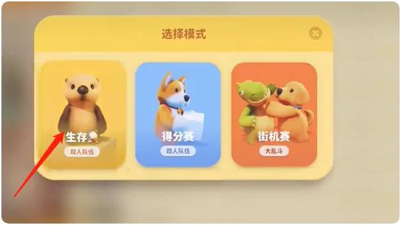 3、在自定义房间上方点击【创建】,出现3个模式,双人模式选择第一个【生存赛】,然后选择一个你想玩的地图即可创建好游戏房间。