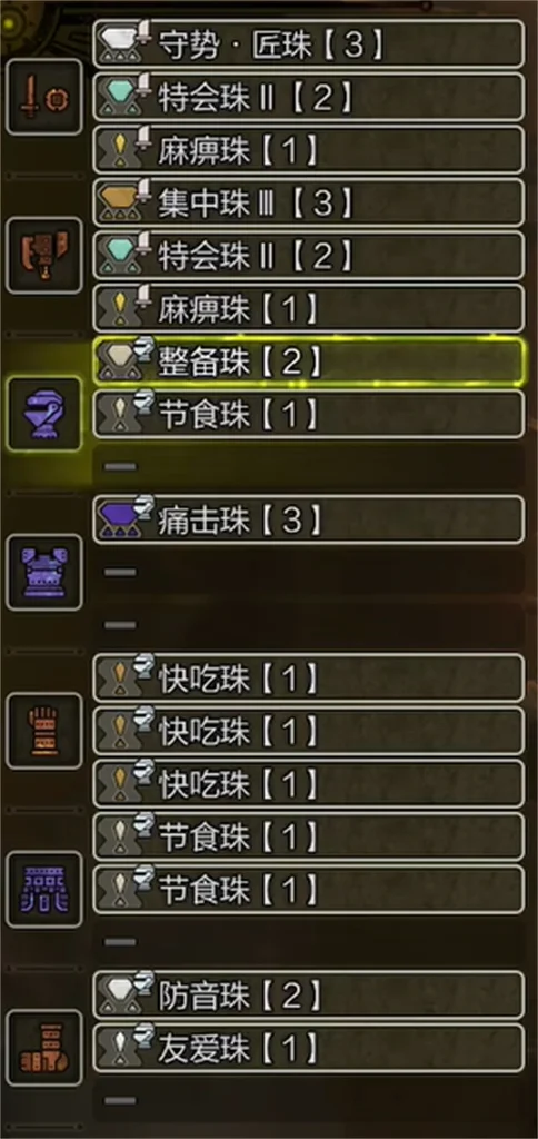 武器:守势·匠珠【3】、特会珠II【2】、麻痹珠III【3】