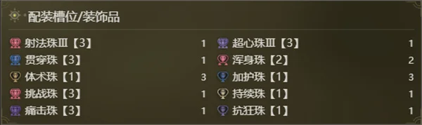 武器:射法珠Ⅲ【3】、超心珠Ⅲ【2】、贯穿珠【3】