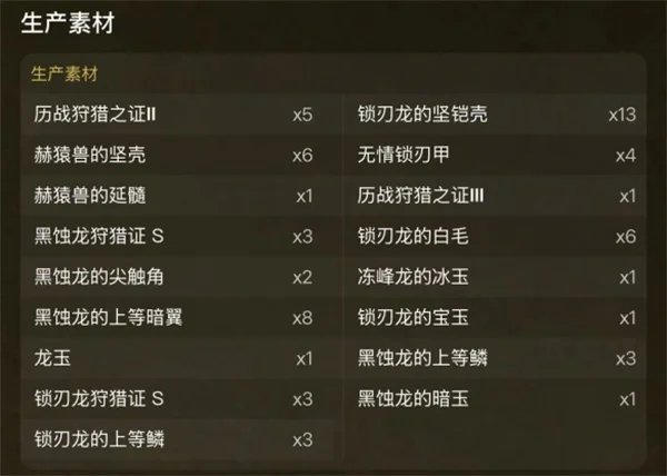 赫猿兽、黑蚀龙、锁刃龙、冻峰龙