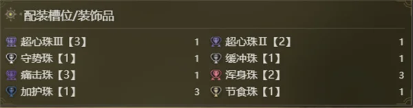武器:超心珠III【3】、超心珠II【2】、守势珠【1】