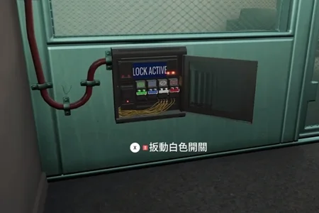 3、安全系统关闭后在右手边的远程操控门处交互,完成后会有一个颜色出现。