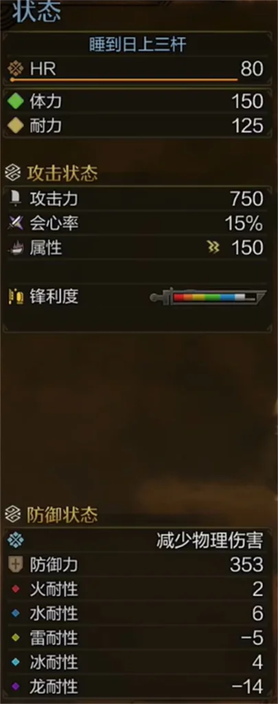 武器:次元刀,麻痹属性1攻击、2会心。