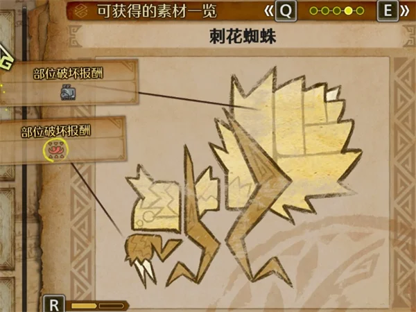 手甲部位需要刺花蜘蛛狩猎证Sx1,刺花蜘蛛的锐爪x1,刺花蜘蛛上等尾棘x1,怪物浓液x1。