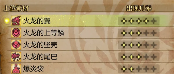 想要获得火龙的红玉就需要攻击火龙的尾巴,需要注意的是,这个材料只在上位掉落,在杀死火龙后就有一定的概率掉落火龙的红玉。