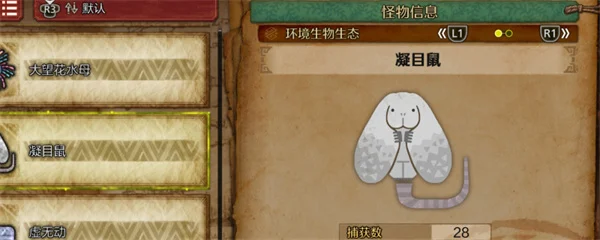 在动作角色扮演游戏怪物猎人荒野中,凝目鼠是一种比较重要的环境生物,部分玩家不知道凝目鼠应该怎么收集,下面就为大家带来怪物猎人荒野中凝目鼠的收集方法分享,有需要的玩家可以参考。