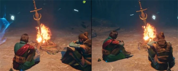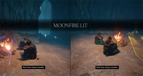 在第四章【最终黎明-实验室】主线关卡中的支线任务【月亮市集】期间,可以遇到《黑暗之魂》系列中的经典篝火,坐下休息还会触发相似的UI特效。