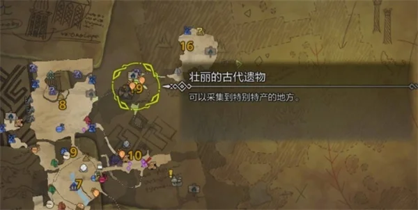 3、接着对壮丽的古代遗物进行采集,就有概率获得金色龙鳞重饰大壶这个素材了。