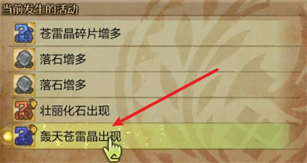 1、我们可以打开天堑沙原的环境概要,看看有没有出现巨大苍雷晶的事件。
