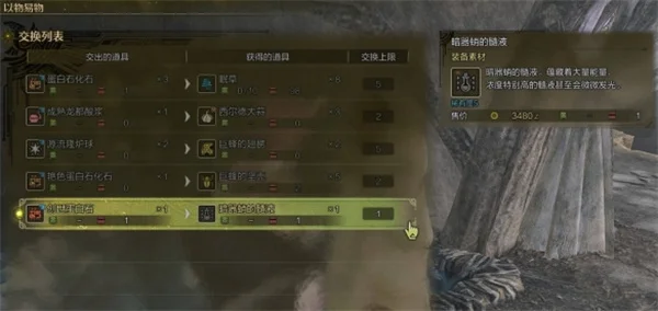 4、创世蛋白石可以用来与龙都遗迹【守护者村西尔德】的【莲恩】交换特殊防具素材或是稀有食材。