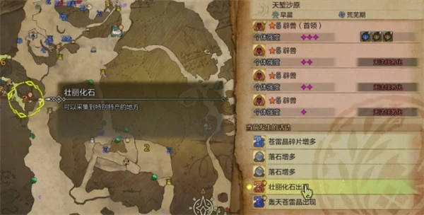 2、在出现壮丽化石时间后,我们可以通过环境概要来找到对应的地点,前往挖掘。