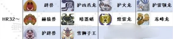 辟兽、护凶爪龙、护火龙、护雷颚龙、赫猿兽、暗器蛸、煌雷龙、冻峰龙、护辟兽和雪狮子王。