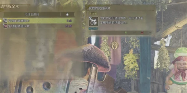 3、玩家在交汇之峰酥加的神秘炼金的位置,还可以通过遗物炼金将武器碎片炼金为机械零件。