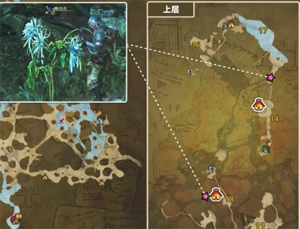 4、绯红森林一夜花位置如下:位于上层的区域14和区域18。