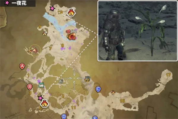 3、天堑沙原一夜花位置如下:位于区域3和区域10。