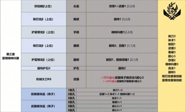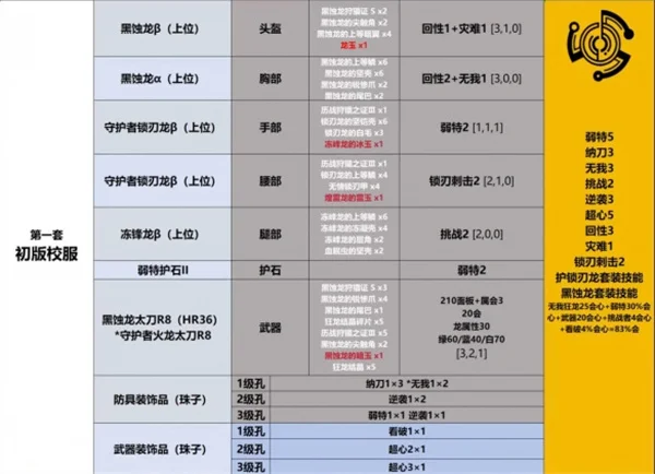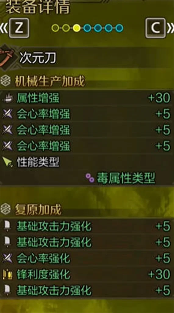 3、目标是8个词条里有4个会心、3个攻击和1个斩味。但只要不出现属性强化词条,也能视为毕业。