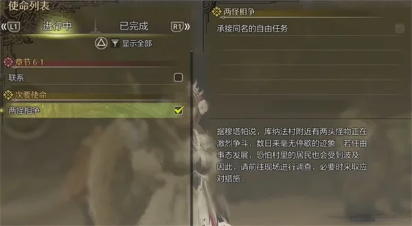 在动作角色扮演游戏怪物猎人荒野中有一个次要使命为两怪相争,部分玩家不知道这个任务应该怎么完成,下面就为大家带来怪物猎人荒野中次要使命两怪相争的任务攻略分享,有需要的玩家可以参考。