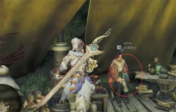 2、然后去帐篷后面找【阿尔玛】选择该任务并快速出发;