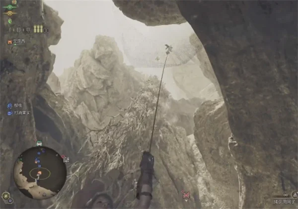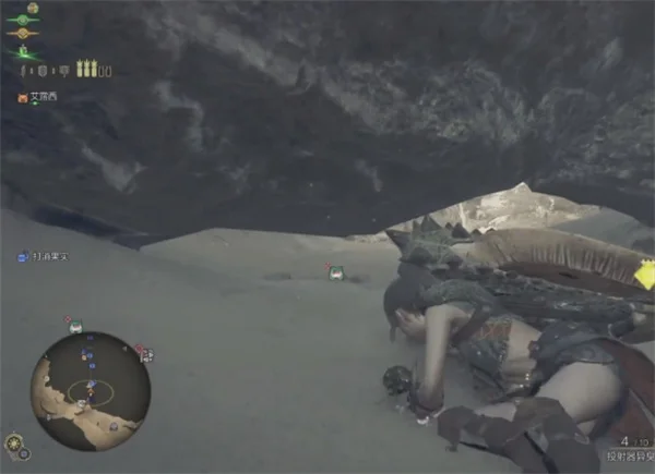 2、朝着石穴跑过去,这里的空间太小了,我们得爬过去。
