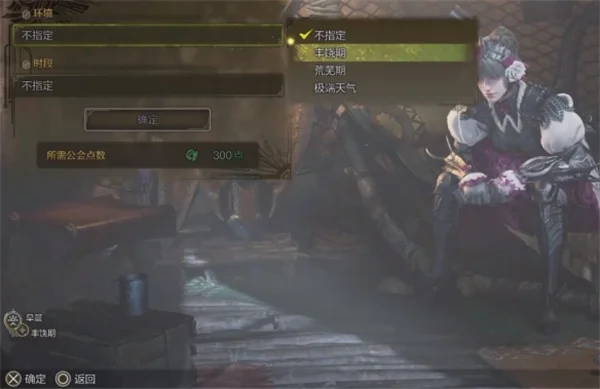 5、还是去绯红森林的大湖畔那,进入营地休息,把环境调到丰饶期。