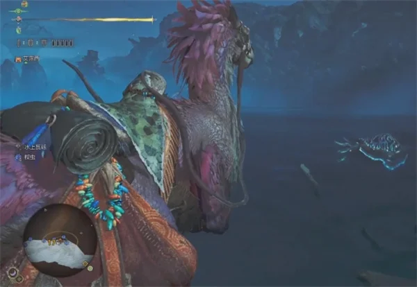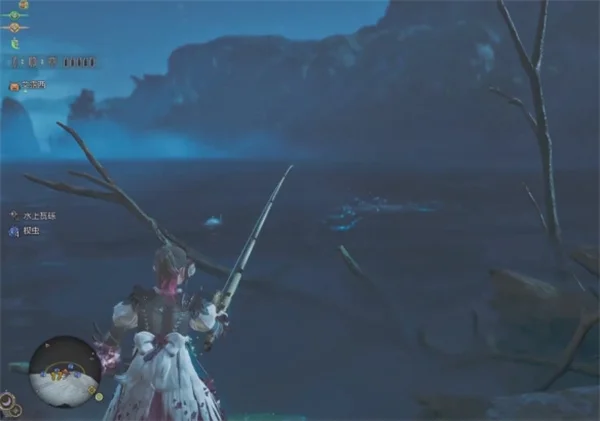6、来到湖畔边,水面上散发着幽暗光芒的就是大乌贼。
