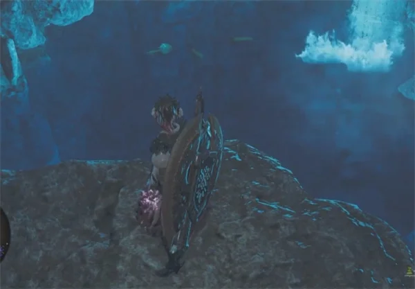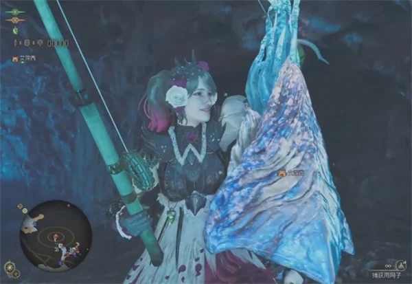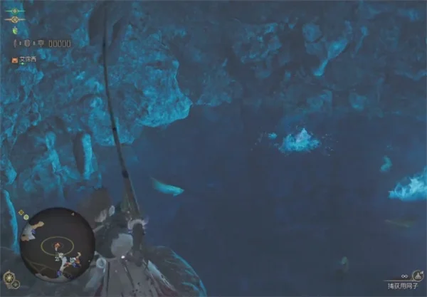 7、看到瑰丽盾章菊螺后,抛鱼竿钓鱼,千万不要用网子捕。