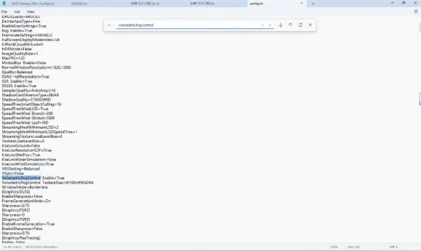 3、按ctrl加F打开搜索,输入VolumetricFogControl。