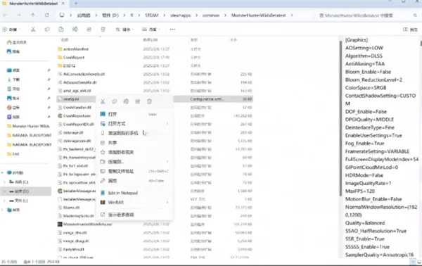 2、在游戏根目录中选择confg.ini,右键打开记事本。