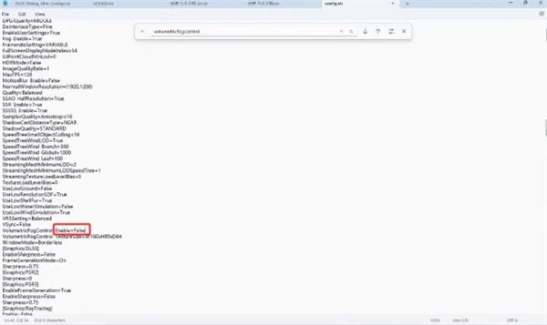 4、把True改成False,这个就是关闭体积雾的意思,最后按ctrl加S保存文档。