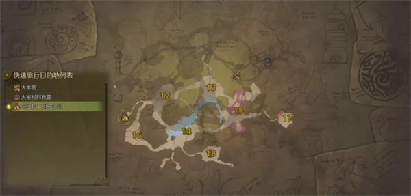 2、打开涌油谷地图,前往区域12绯红小河处。