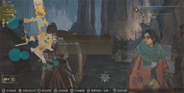 3、找到区域13上方的药草地,设置成目的地赶过去。