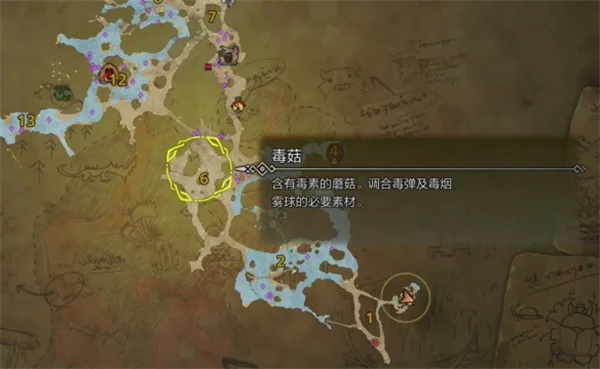 2、接着我们导航到绯红森林的6号区域的毒菇。